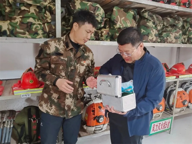 在各森林防火一线,公司督导检查组通过听取汇报、实地查看、查阅资料等方式,详细了解了各单位关于安全生产责任落实、安全隐患排查整治、森林防火措施部署、应急准备、值班值守等方面的情况。重点检查了防火机具库物资储备与维护、扑火队伍备战状态,并深入防火检查站、瞭望塔,与值守职工和作业人员亲切交流,关心他们的工作与生活状况。