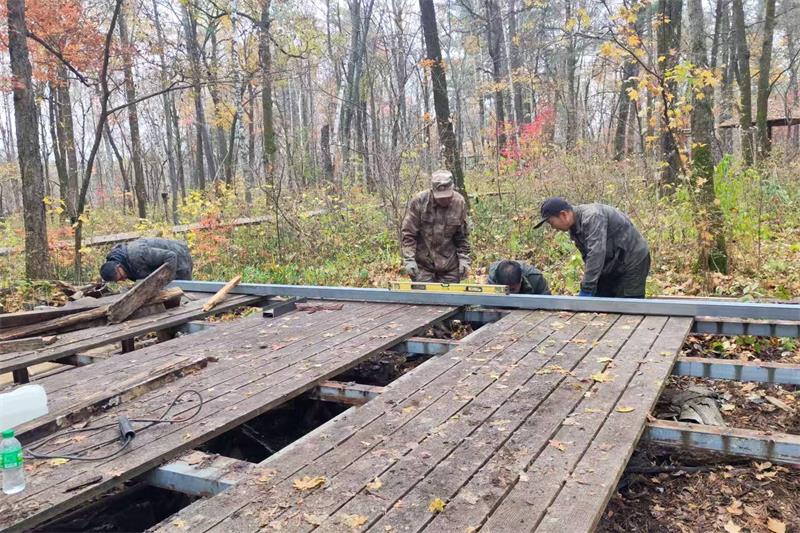 “十一”双节黄金旅游期过后,公司启动露水河长白山狩猎度假区设施全面检修与升级工作,对度假区内部分建筑和周围地面栈道平台进行翻新建设。预计完成翻新木栈道平台120㎡,此次维修将进一步优化游客游览体验,提升度假区品质,为冰雪旅游季的安全运营打下坚实基础。 下一步,露林公司将继续秉持“多点出击、精准发力”的工作原则,紧盯各项重点工作时间节点,持续加强现场监管与协调调度,严把工程质量关、安全关、进度关,确保所有项目高质量圆满完成,为公司整体发展提供坚实支撑。 |