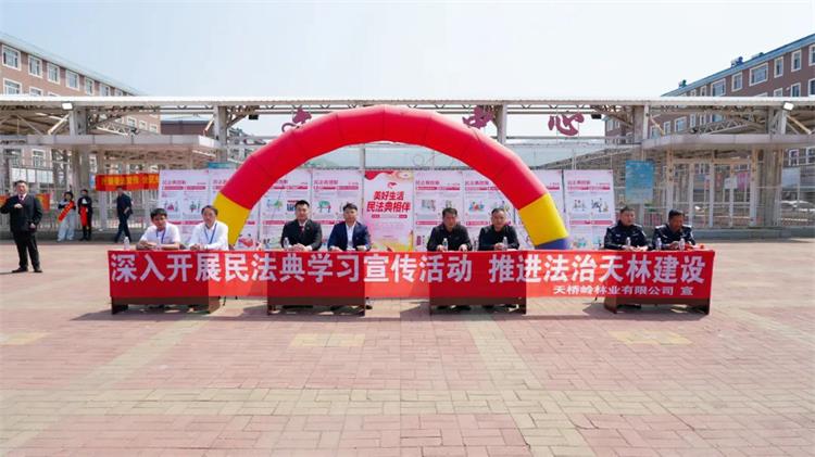 2025年5月是我国第五个“民法典宣传月”。天桥岭林业有限公司依托理论学习中心组集体学习会青年干部培训班基层党组织“三会一课”等多种载体,扎实开展了民法典宣传月系列宣教活动。为进一步提升广大群众对《中华人民共和国民法典》的认知度和运用能力,确保宣传月活动取得实效,5月27日,天桥岭林业有限公司、天桥岭镇政府、天桥岭林区基层法院、汪清县司法局、青松派出所在公司文体中心广场联合举办了“美好生活 民法典相伴”宣传活动。